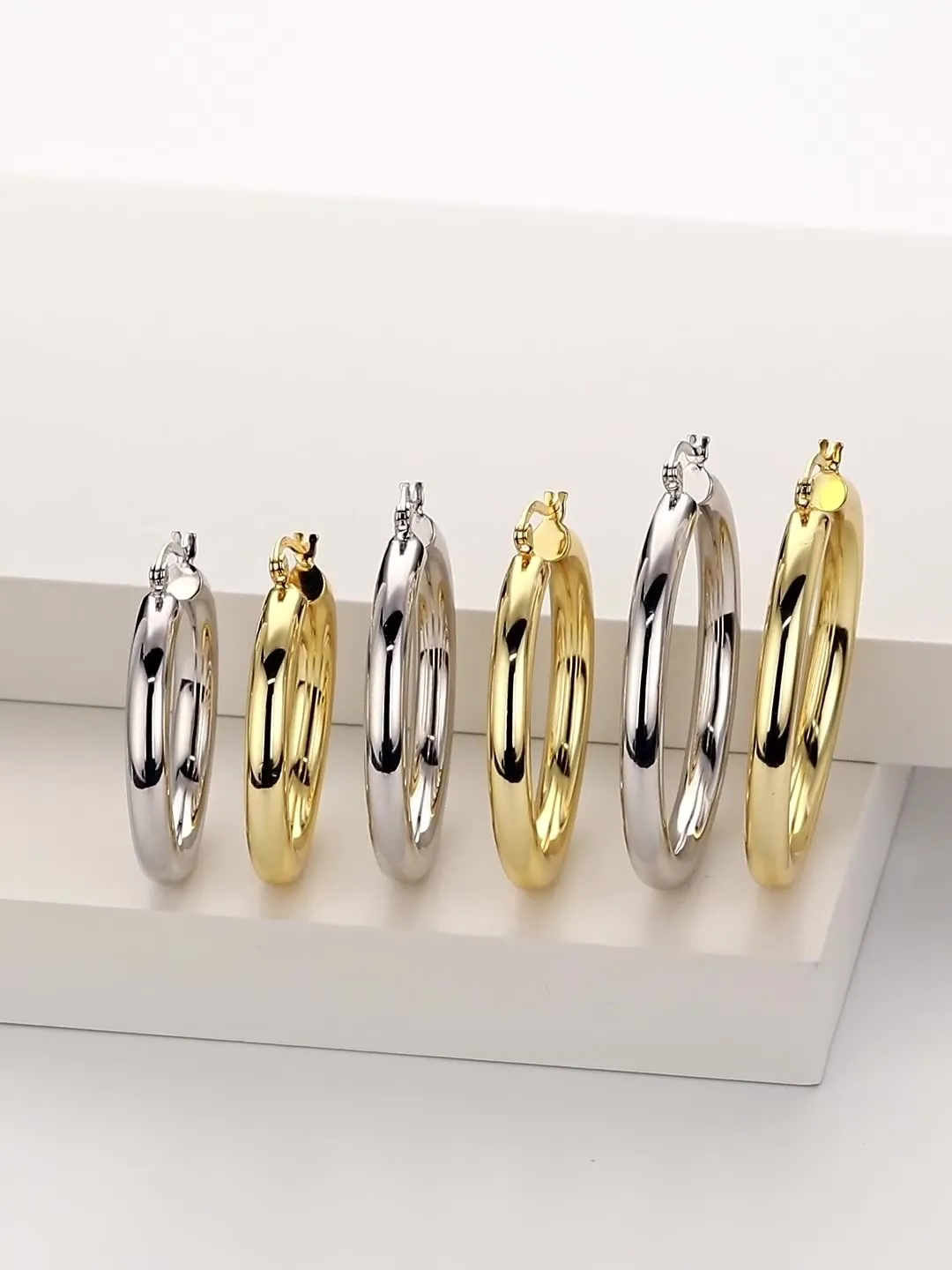The 35mm Hoop Earrings are a timeless accessory that combines a bold size with a sleek, minimalist design. With their 35mm inner diameter, these earrings are versatile enough to transition effortlessly from day to night. Exclusively available for wholesale buyers, they are a must-have for retailers and boutiques seeking to offer high-quality, stylish jewellery that appeals to a broad customer base.