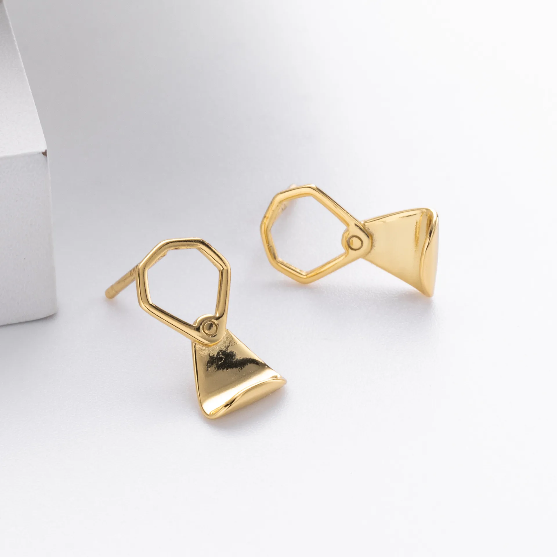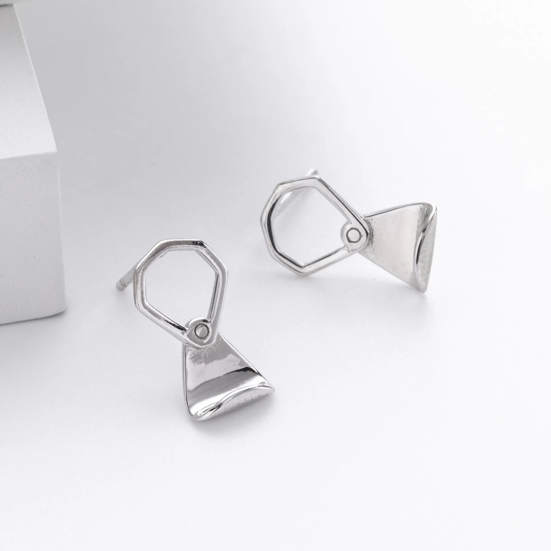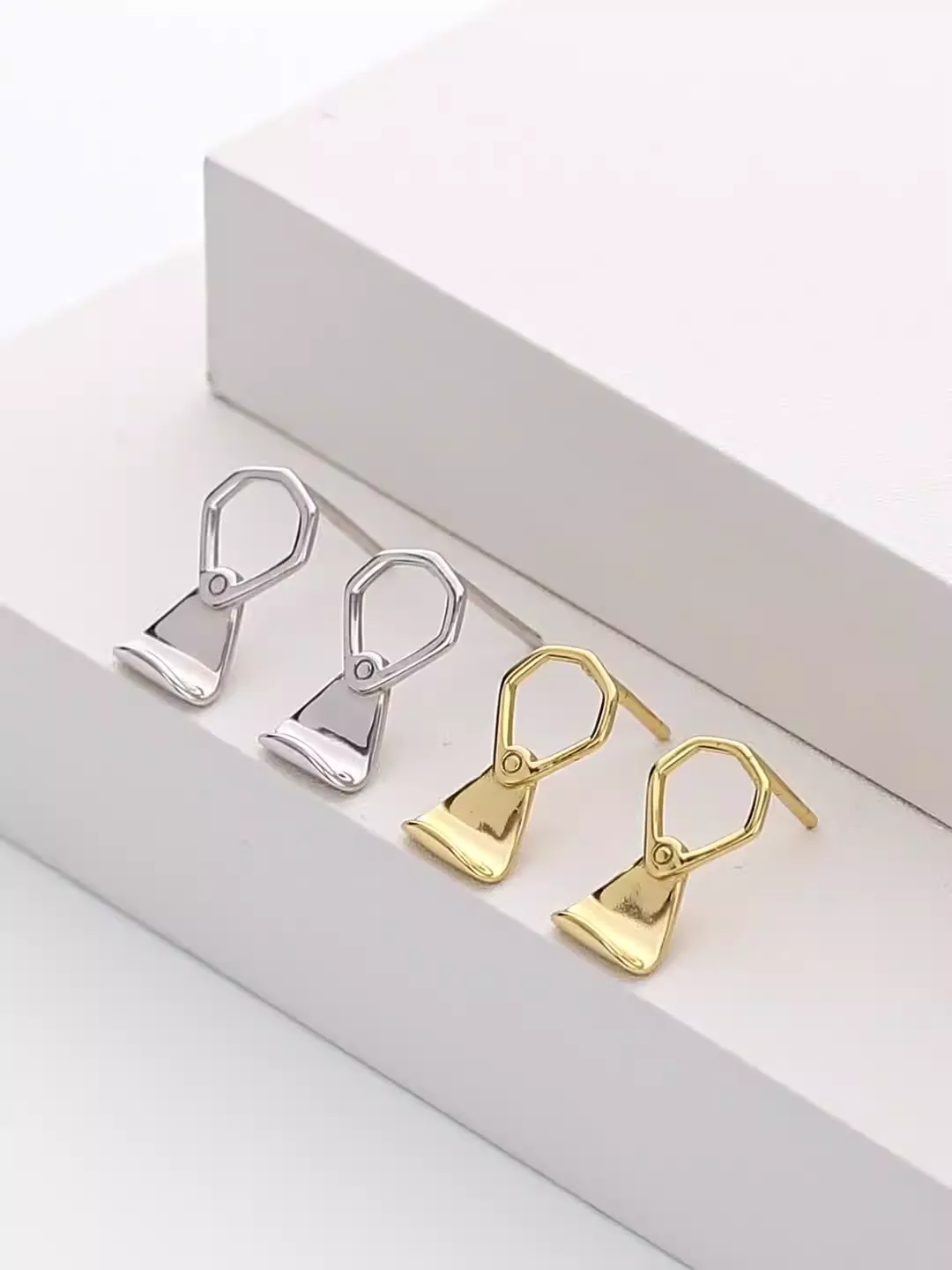 These earrings are available in both silver and gold finishes, allowing buyers to curate selections that align with different brand directions. The highly polished surface enhances the geometric structure, giving each piece a contemporary shine. Perfect for pairing with minimal, high-concept wardrobes.