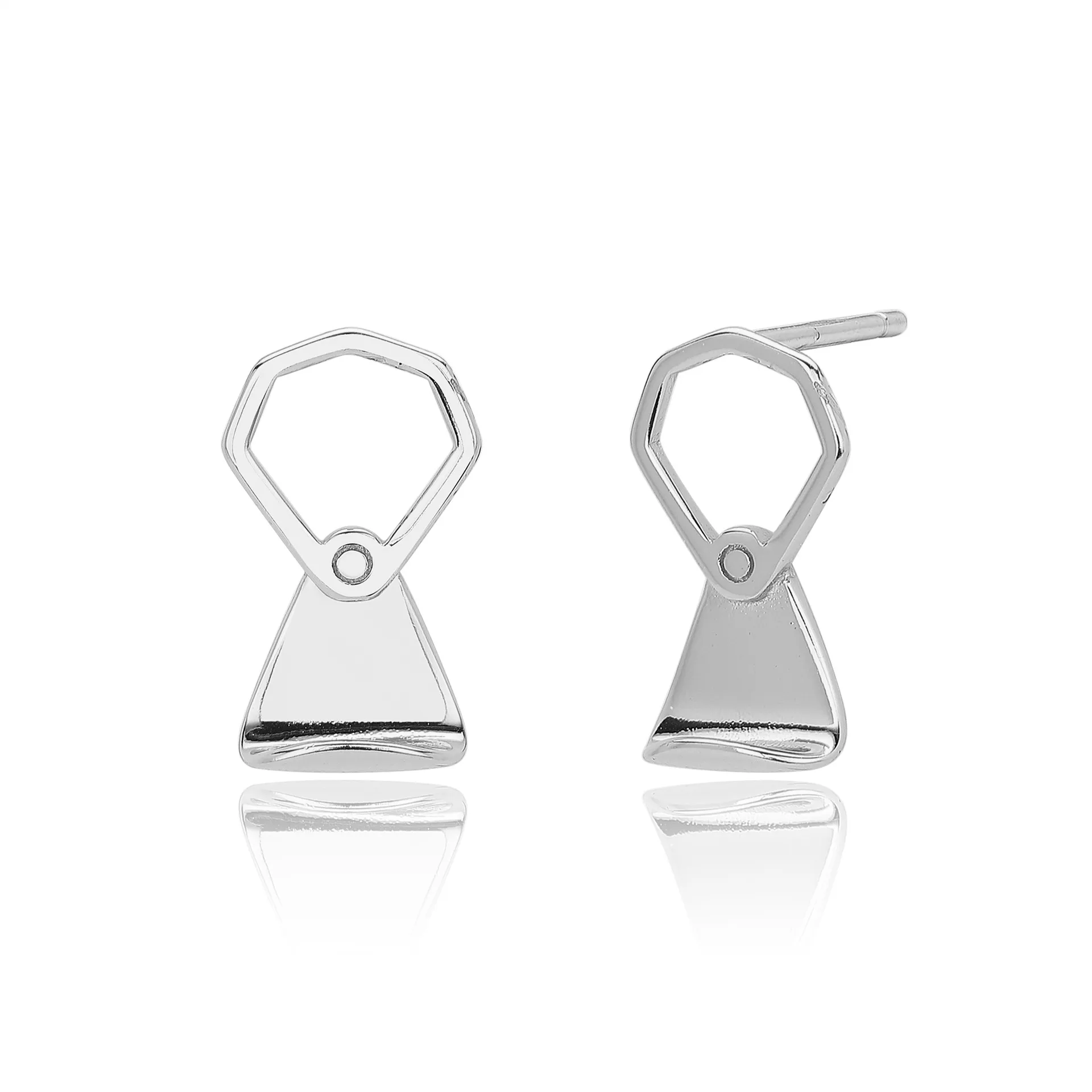 The Abstract Shape earrings redefine minimalism through clean geometry and subtle asymmetry. This design, featuring a pentagon-like top and a sculpted drop form, offers a balance between art and elegance. Crafted in 925 sterling silver, these earrings are modern, polished, and adaptable to a variety of style aesthetics.