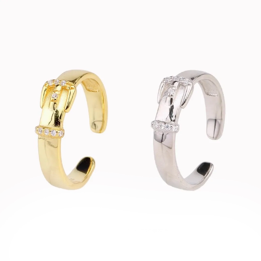 925 Sterling Silver: A timeless choice that emphasizes the clean, polished lines of the belt-inspired motif.