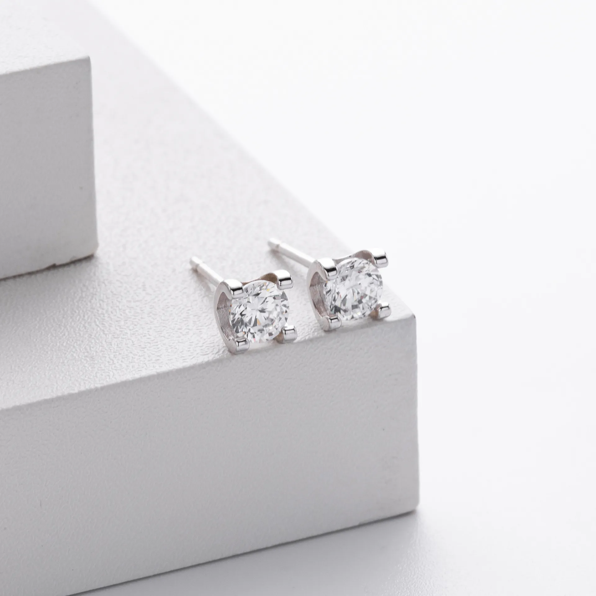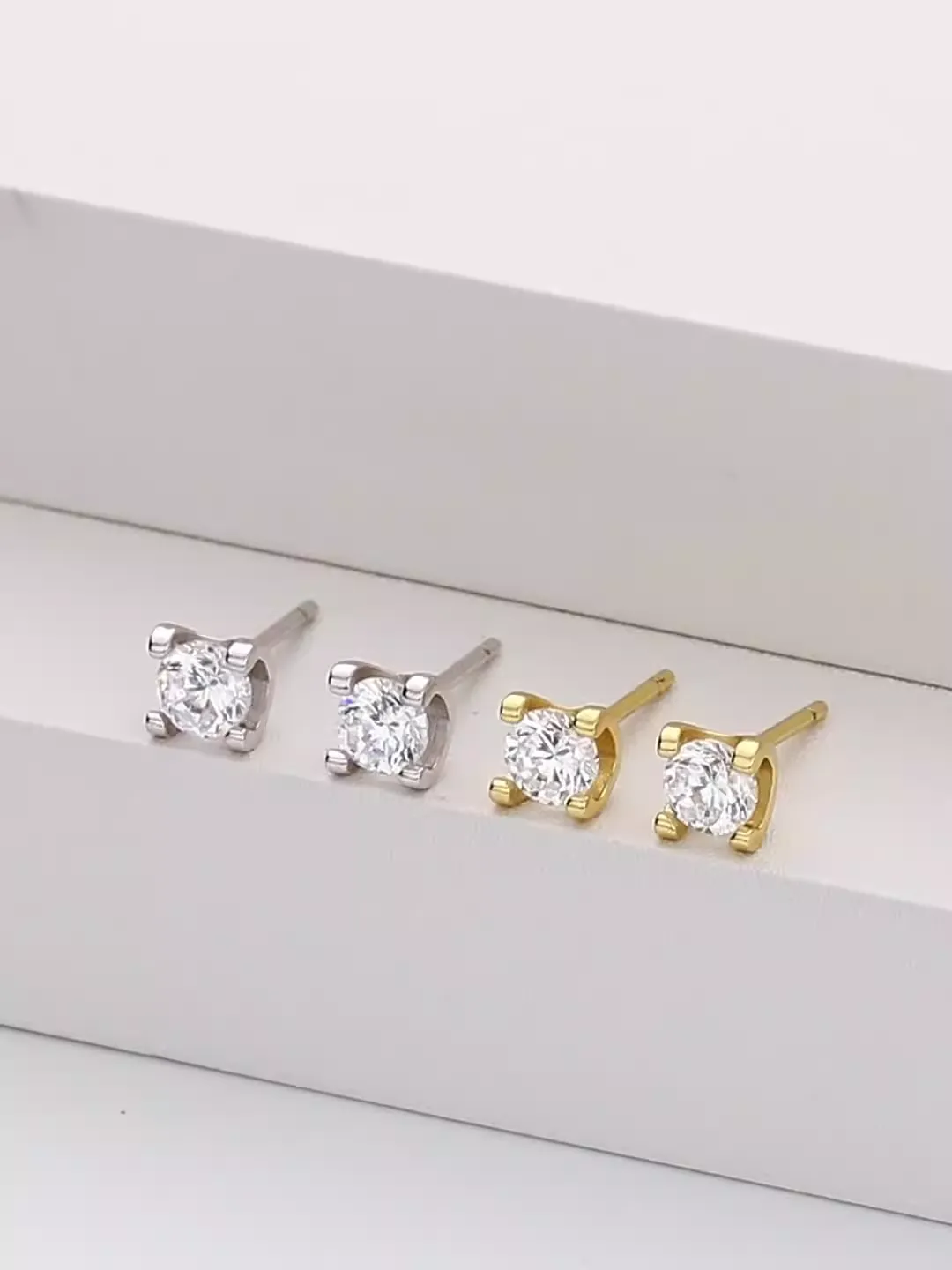 The Classic Solitaire earrings embody the power of simplicity. With a clean silhouette and graceful lines, these stud earrings highlight a single brilliant-cut zircon, carefully held in place by four secure prongs. The minimalistic style allows the light to pass through effortlessly, creating a radiant sparkle that stands out with elegance.