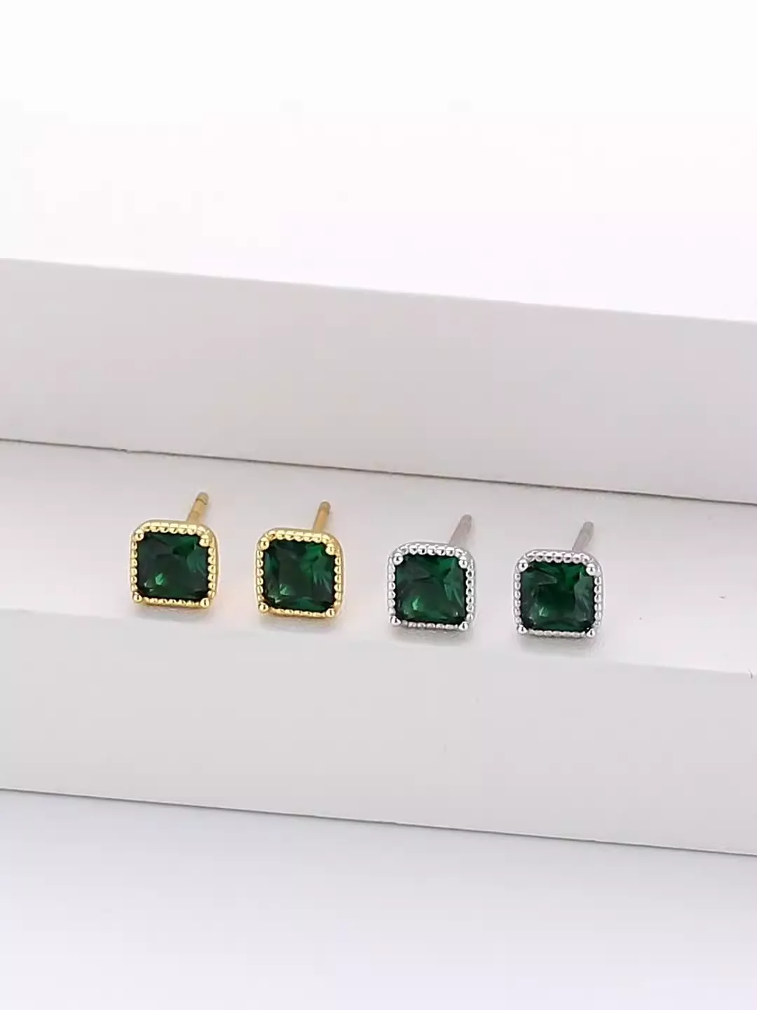 Each Emerald Cushion-Cut earring is set in 925 sterling silver, known for both strength and brightness. The vibrant square-cut centrepiece is a 5A grade zircon, offering exceptional brilliance and clarity. It is delicately bordered with a silver bead frame, adding dimension to the look without overwhelming the stone.