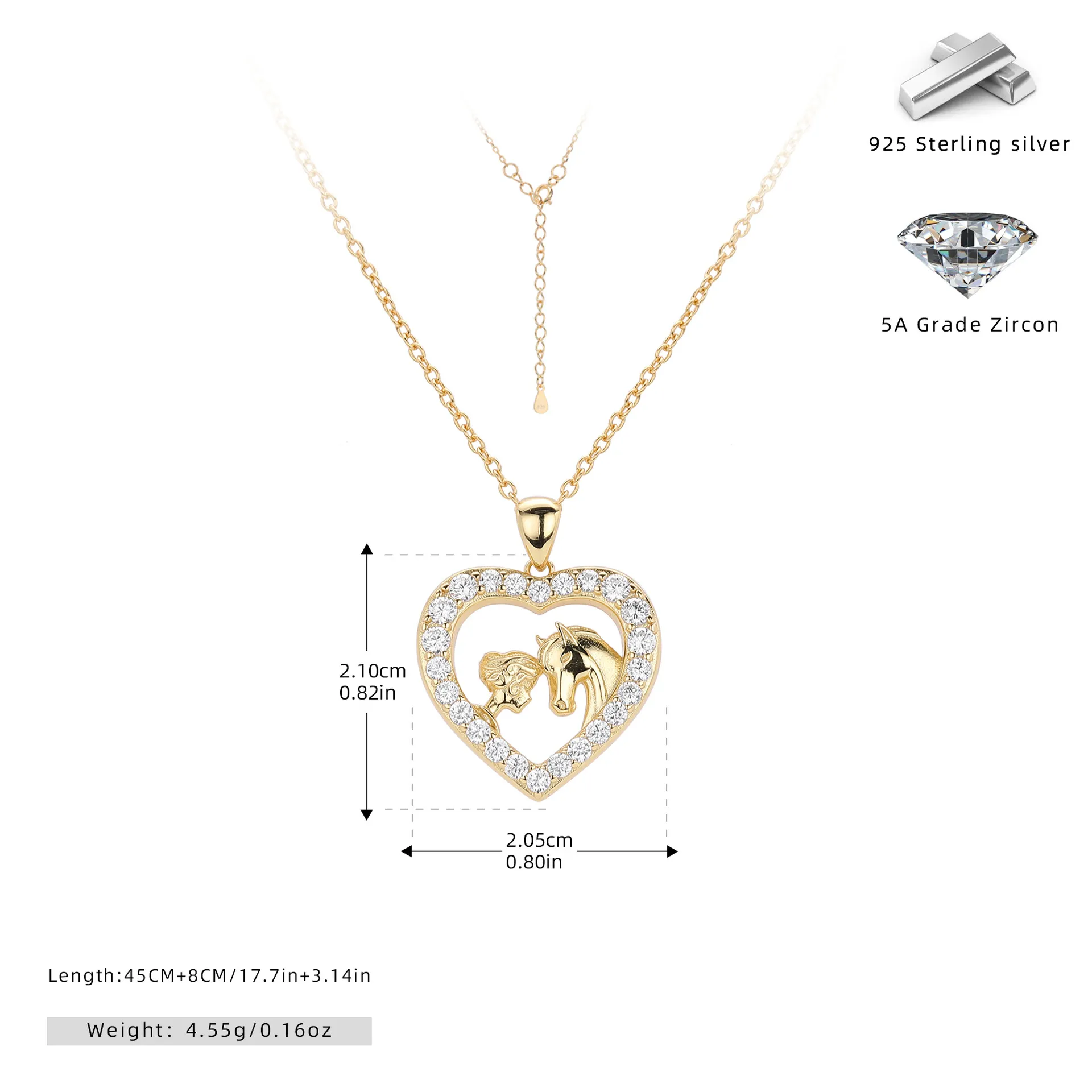Crafted from premium 925 sterling silver, the Equestrian Love necklace offers both durability and elegance. The highly polished finish enhances the pendant’s shine, while 5A grade zircon stones provide a refined sparkle. For those who desire a warmer tone, this necklace is also available in gold vermeil.