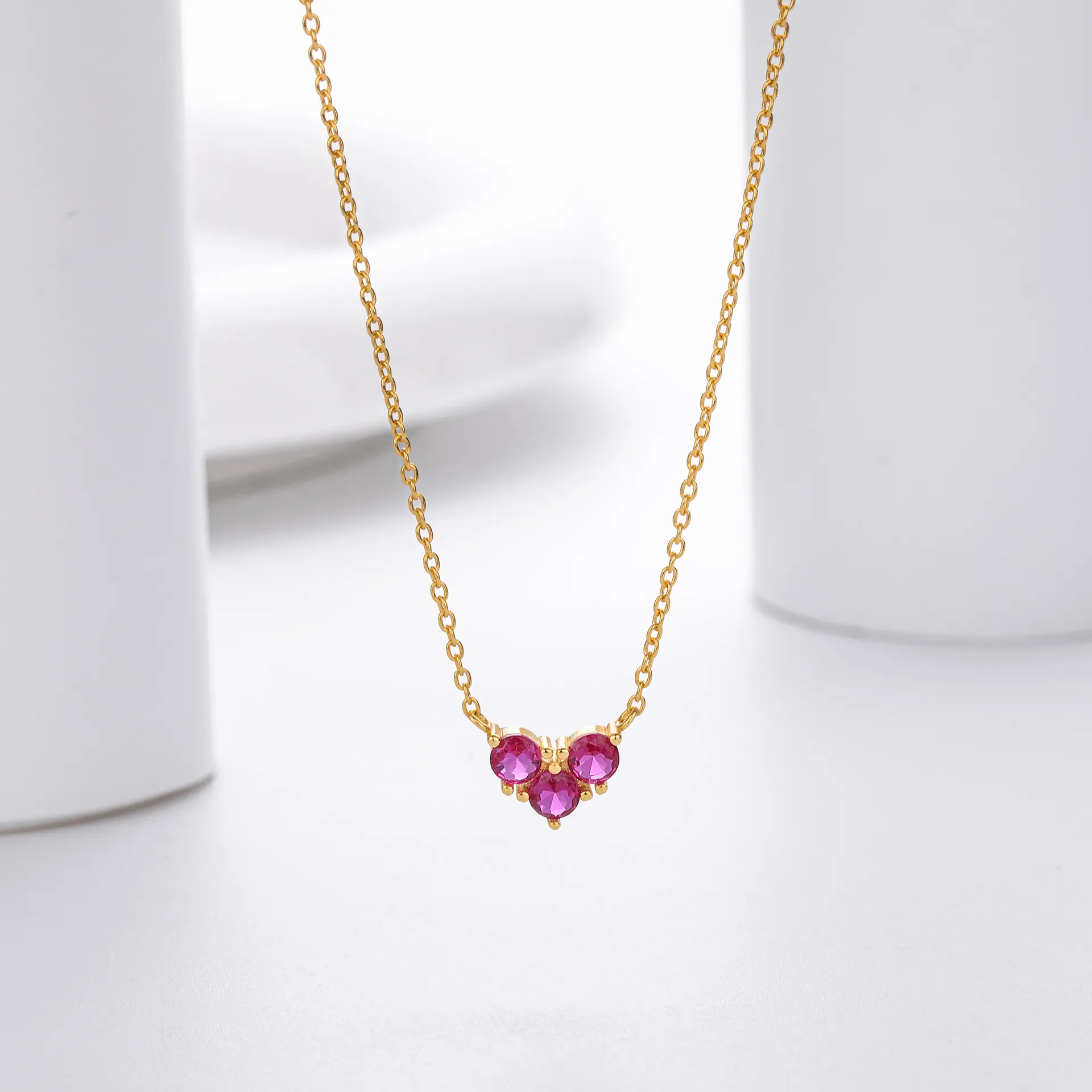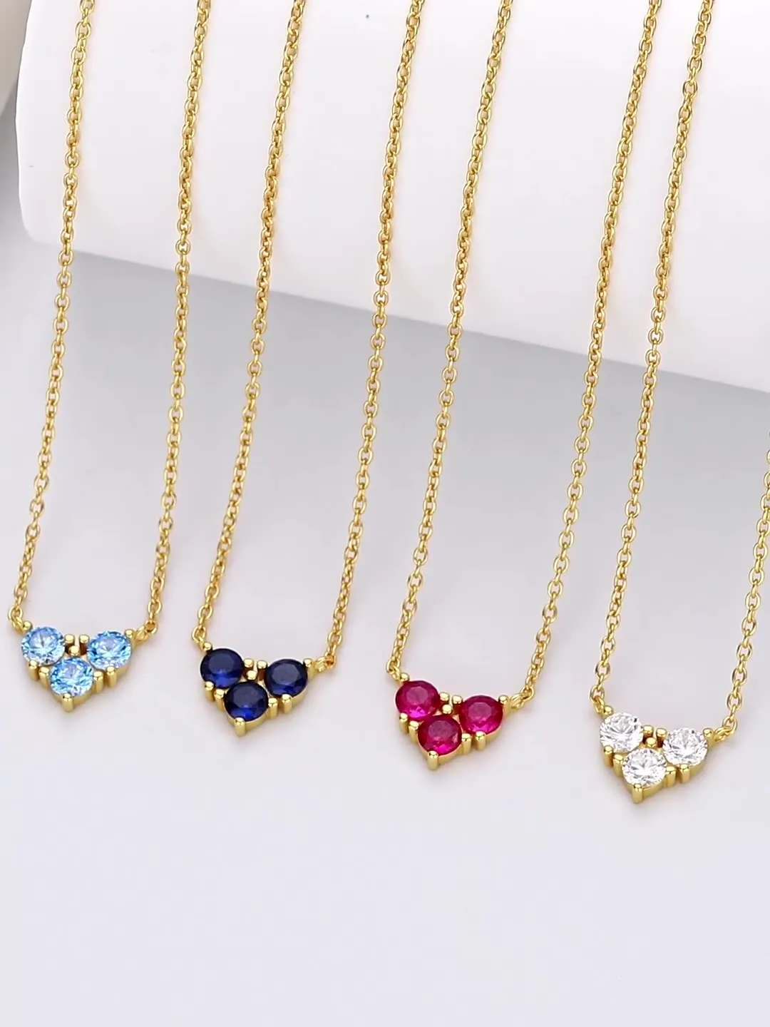The distinct design of the Eternal Trio necklace showcases three flawlessly cut zircon stones, representing unity, balance, and everlasting beauty. Whether it's the sparkle of clear zircons or the vibrancy of colored stones, the triangular arrangement ensures that this piece stands out effortlessly. Its clean lines and elegant design make it suitable for every occasion, from daily wear to special events.