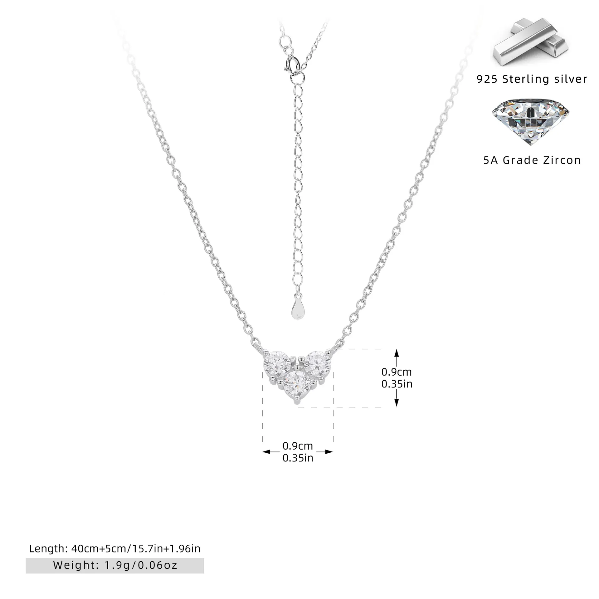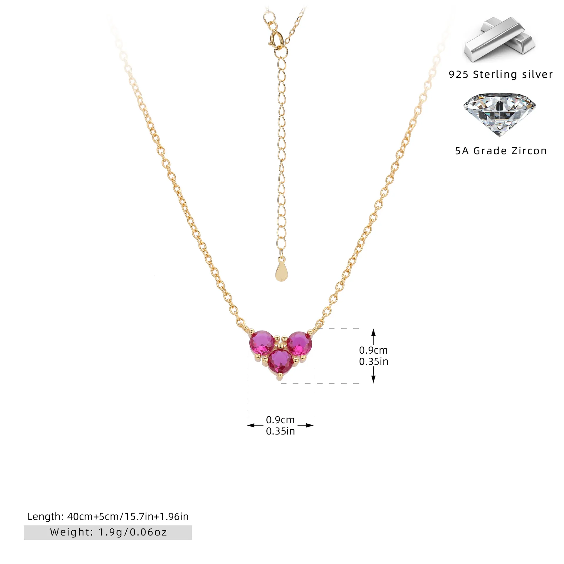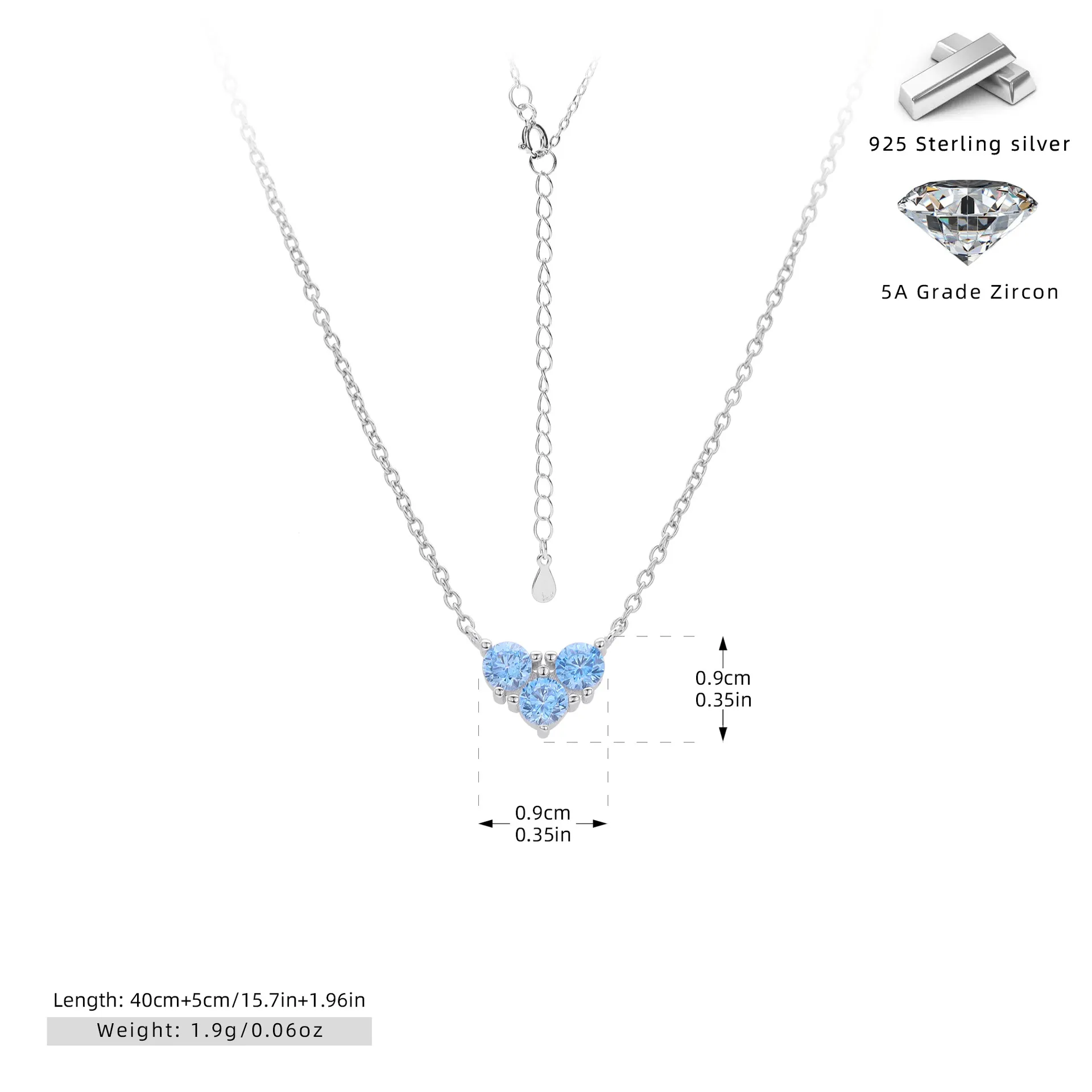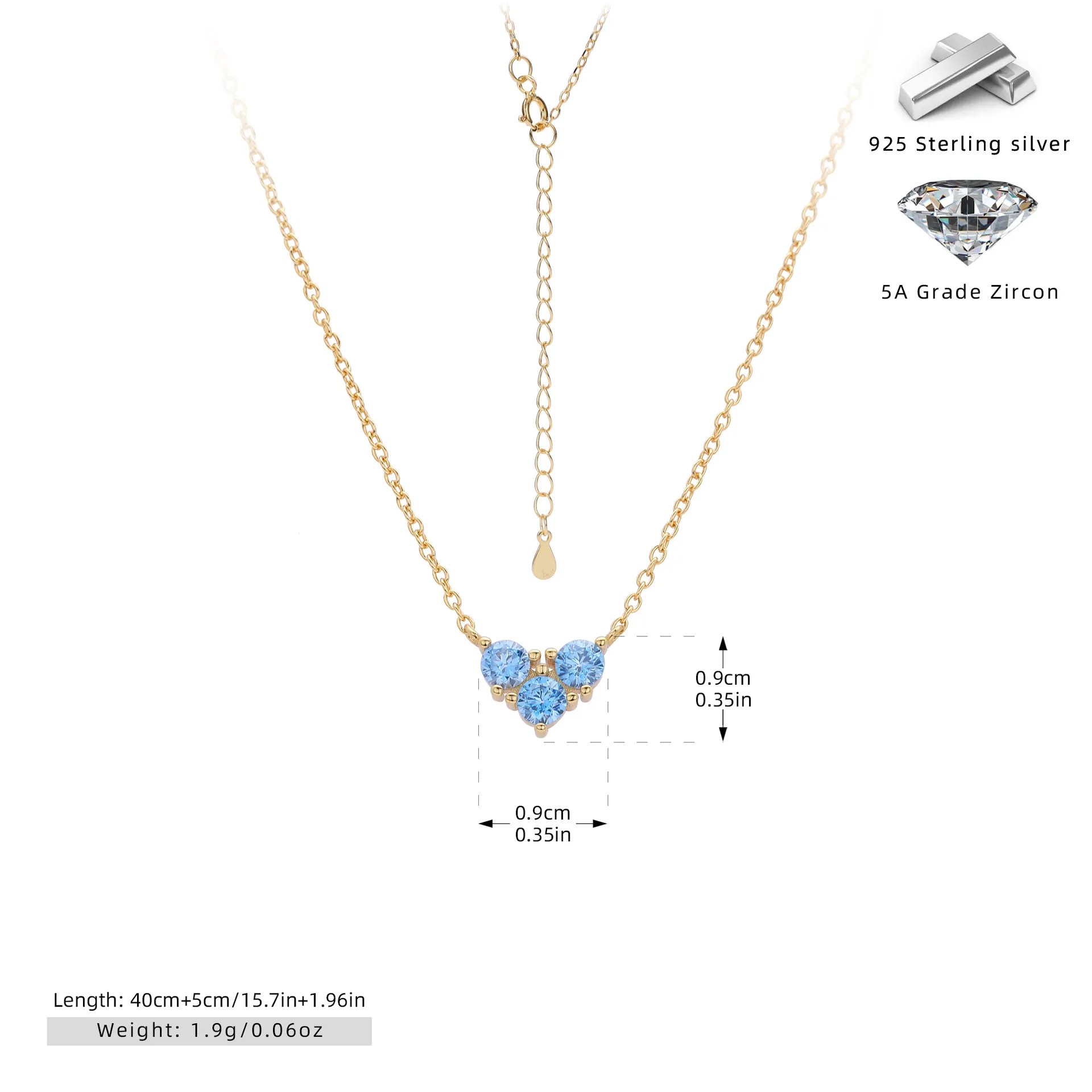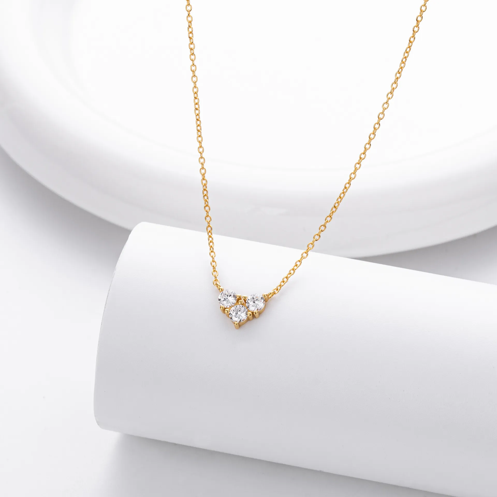 Crafted with care, the Eternal Trio necklace combines durability with sophistication. The 925 sterling silver base ensures strength and longevity, while the optional Rhodium or Gold Vermeil plating adds a luxurious finish. The 5A grade zircon stones emulate the sparkle of fine diamonds, offering exceptional brilliance at an affordable price. This necklace promises to retain its luster for years to come.