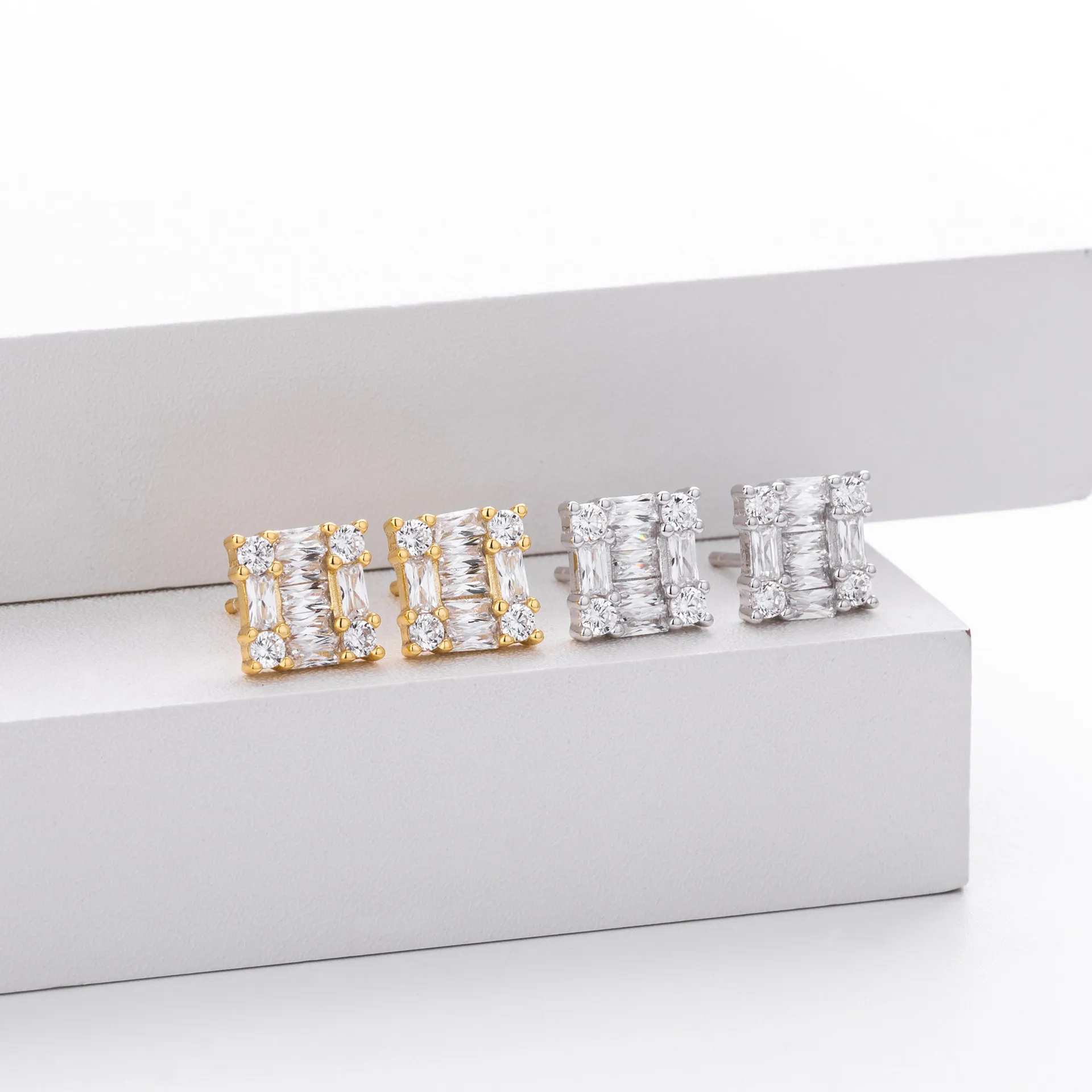 Crafted entirely from 925 sterling silver, the Gilded Block ensures durability while offering hypoallergenic wear. Whether in its high-polished silver or gold vermeil finish, this pair maintains a refined look. The use of 5A grade zircon stones guarantees a luminous effect, closely resembling diamonds, without compromising on ethical sourcing.