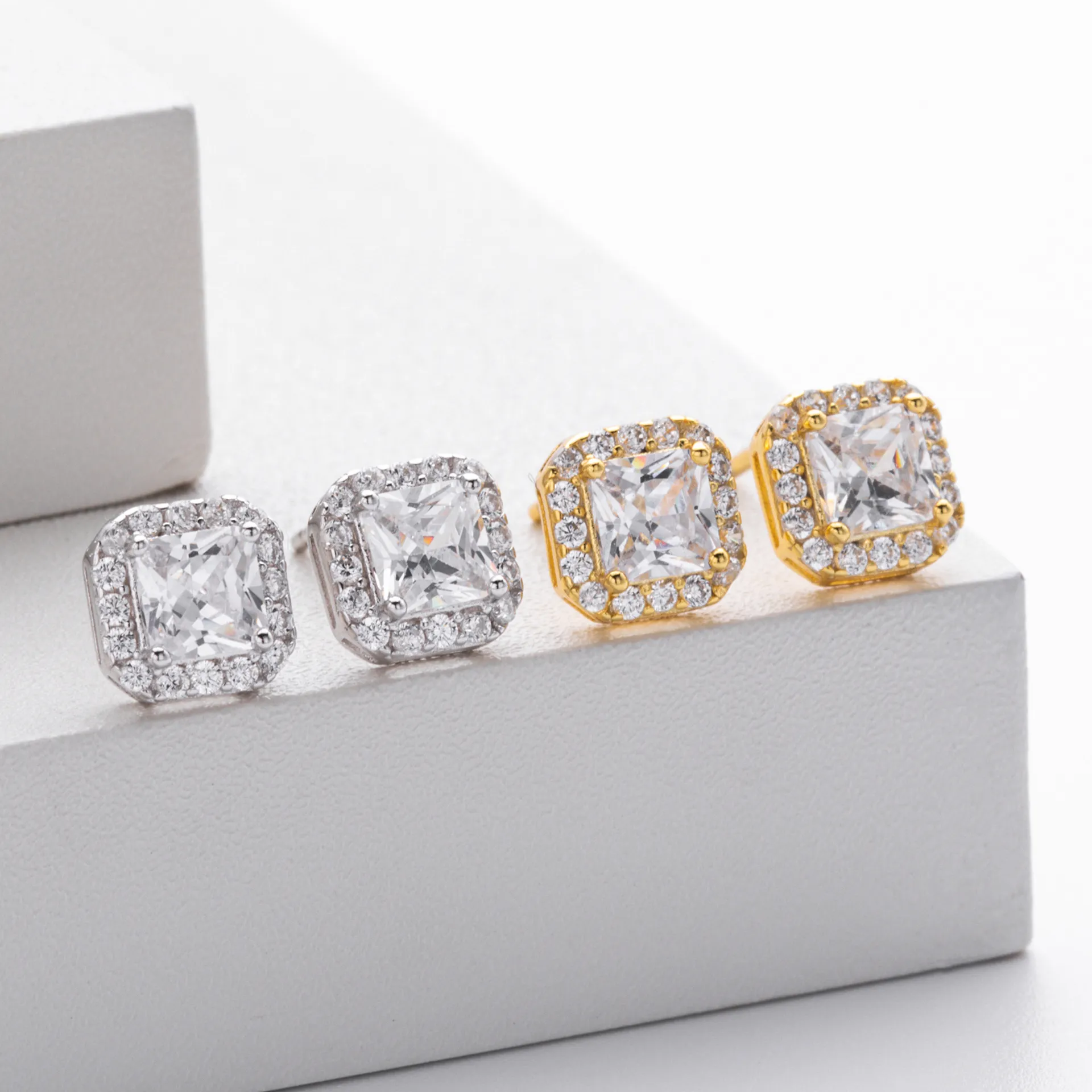 The Iced Halo earrings are a contemporary interpretation of classic elegance. Crafted to radiate brilliance, the square halo setting reflects sophistication and grace. The geometric shape complements modern fashion, while the surrounding 5A zircon stones create a timeless sparkle that mimics real diamonds.