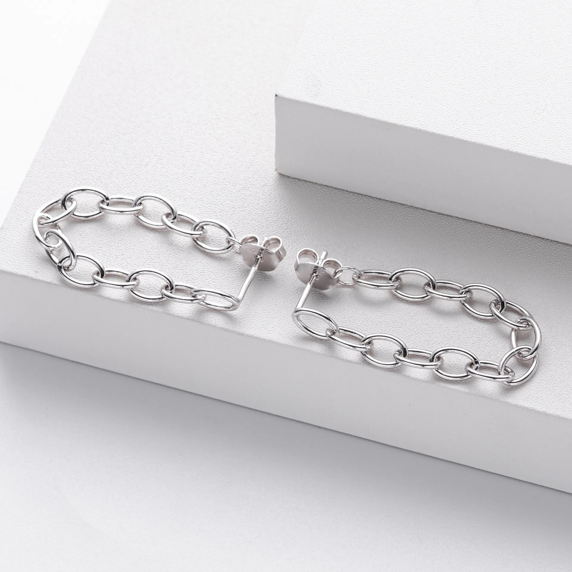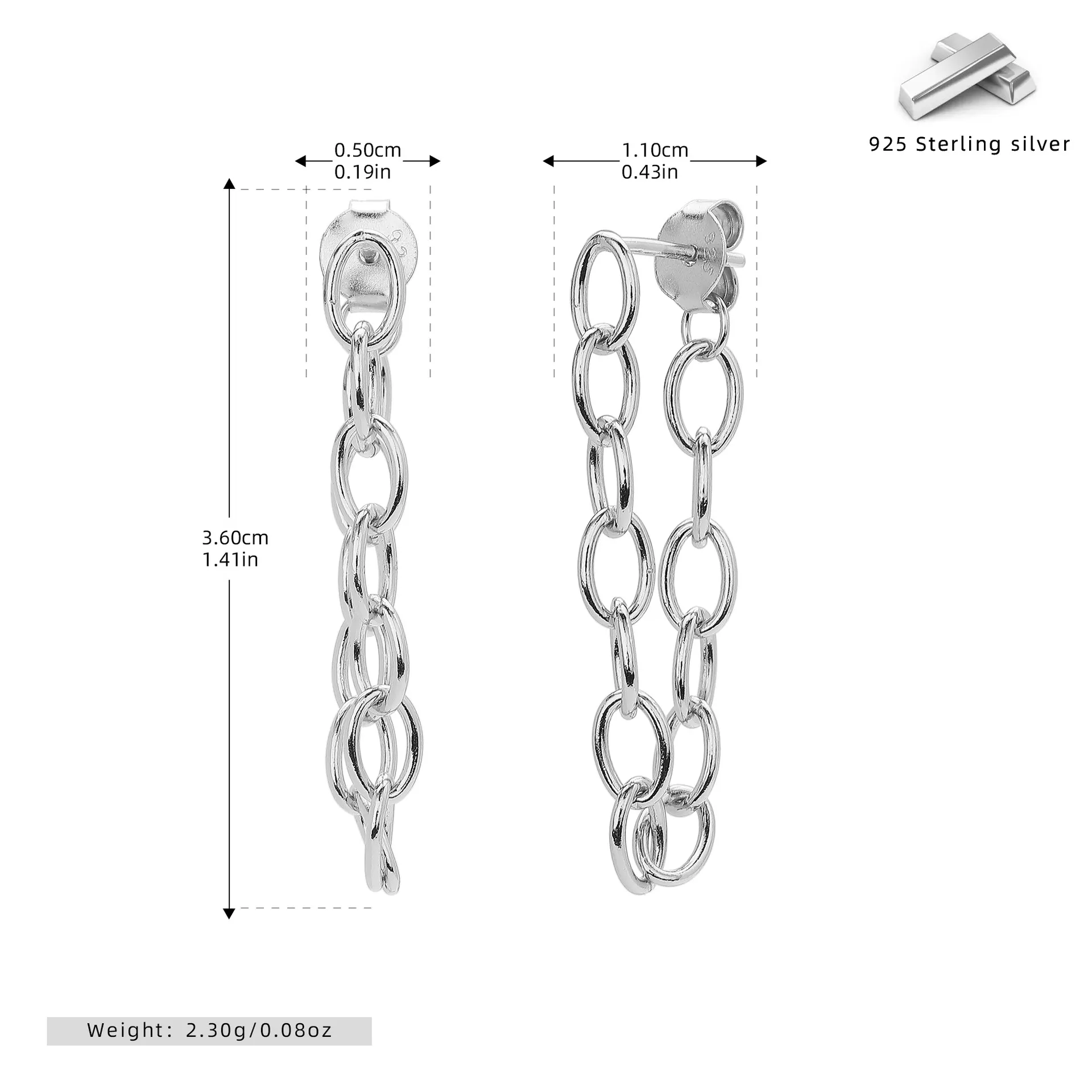 This contemporary design showcases a sequence of interconnected oval links that form a cascading chain silhouette. The structure exudes modern elegance while maintaining a minimalist aesthetic. At 3.6cm in length, the design offers movement and visual intrigue without overwhelming the ear. Its slim and elongated shape naturally complements various face shapes, adding grace and elongation to the profile.