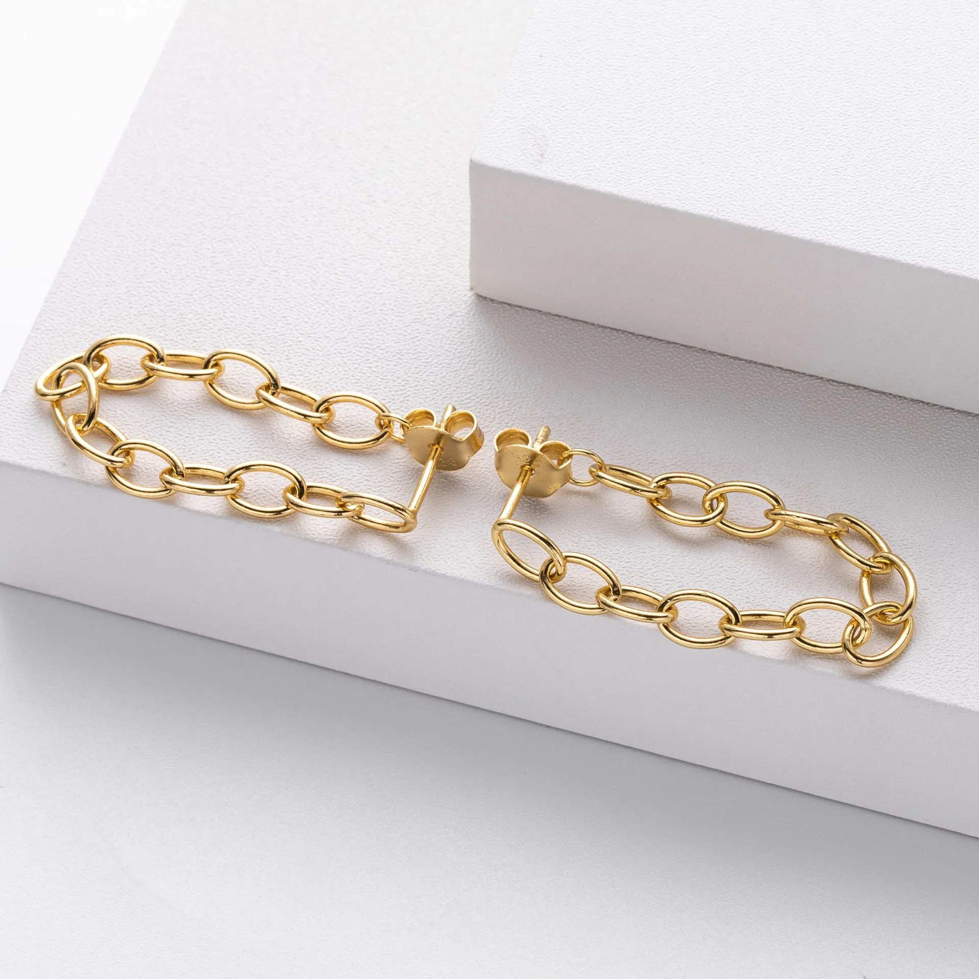 The Long Oval Chain stud earrings are meticulously crafted in 925 sterling silver, offering a brilliant and enduring finish. This timeless metal is known for its strength and luminous quality, ensuring a luxurious experience for the wearer. Available in both classic silver and radiant gold plating, each pair is carefully polished to a high shine for a flawless presentation. The earrings are hypoallergenic and nickel-free, making them suitable for sensitive ears.