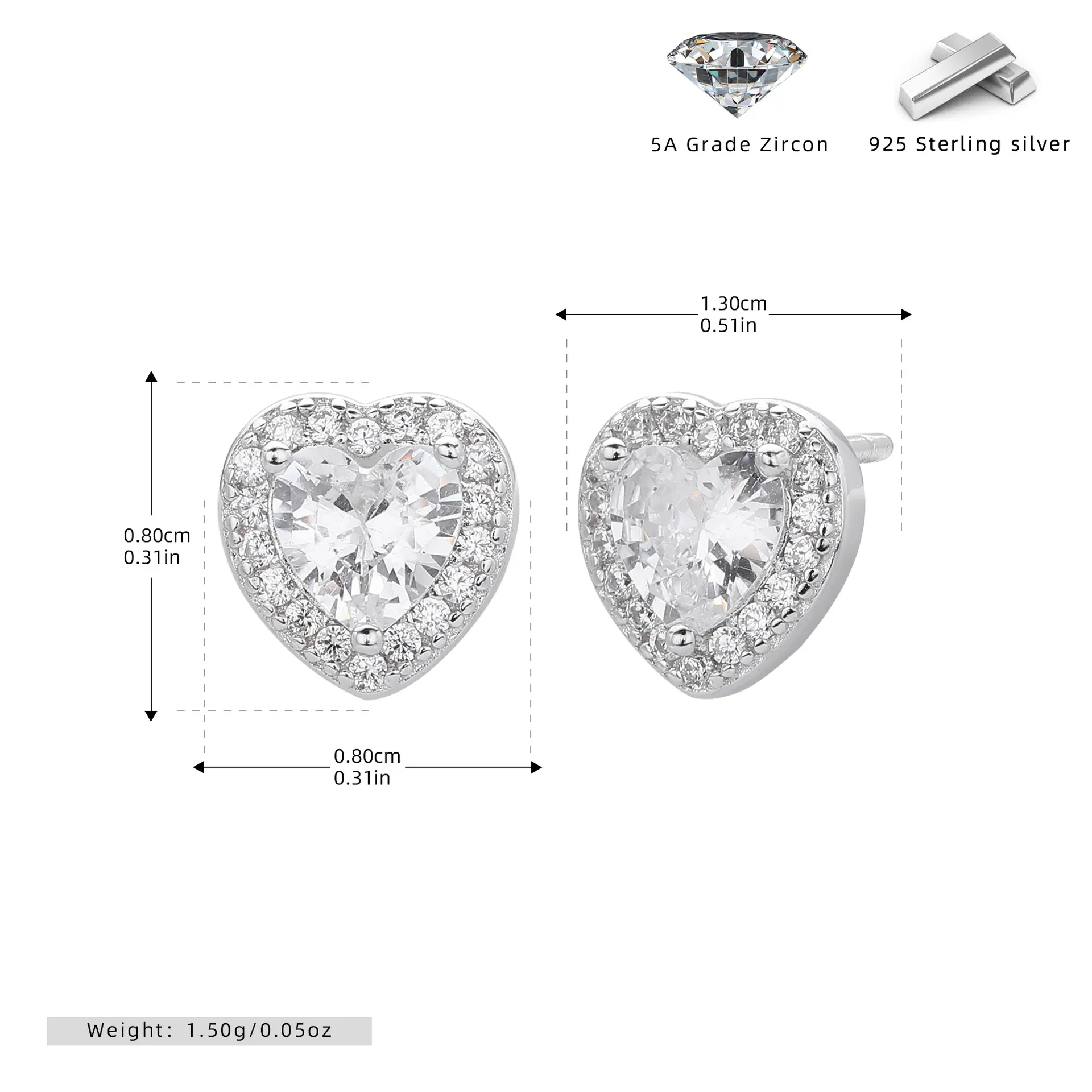 The Luminous Love earrings feature a refined heart silhouette, meticulously adorned with dazzling 5A grade zircon. Designed to shine with elegance, each earring showcases a luminous heart-shaped center stone surrounded by a halo of smaller zircons, creating a timeless and radiant impression. With their 925 sterling silver setting, these earrings combine durability with beauty, ensuring they remain a staple in every jewellery box.