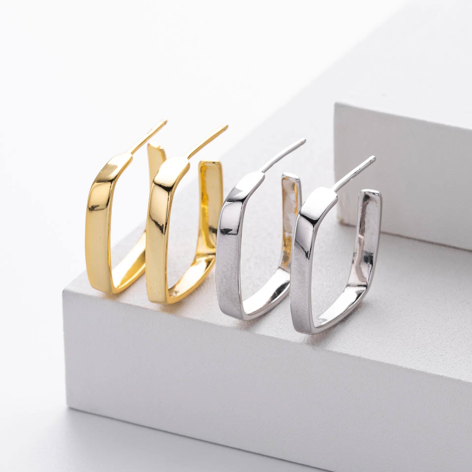 Precision-crafted in 925 sterling silver, the Modern Sculpt earrings come in two stunning finishes: radiant silver and rich gold vermeil. The surface is flawlessly polished, creating a mirror-like shine that reflects light with every movement. This refined finish complements the sharp lines of the design, enhancing its sculptural beauty. Whether worn solo or paired with other geometric pieces, these earrings maintain their presence with quiet confidence.
