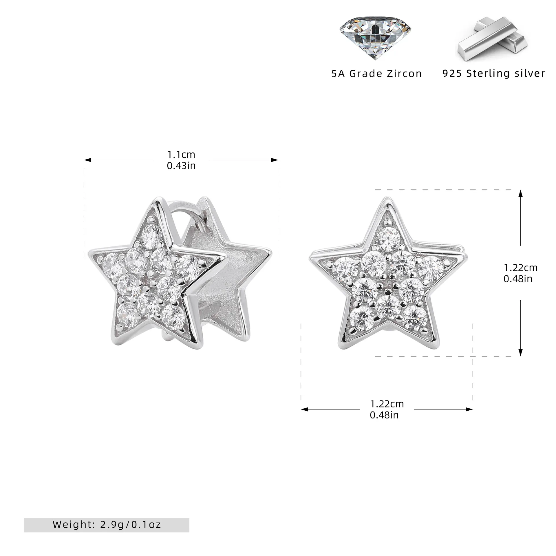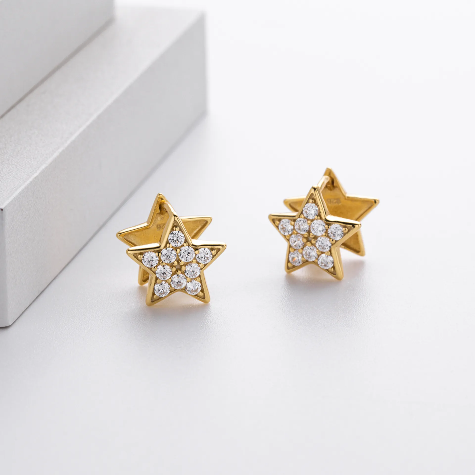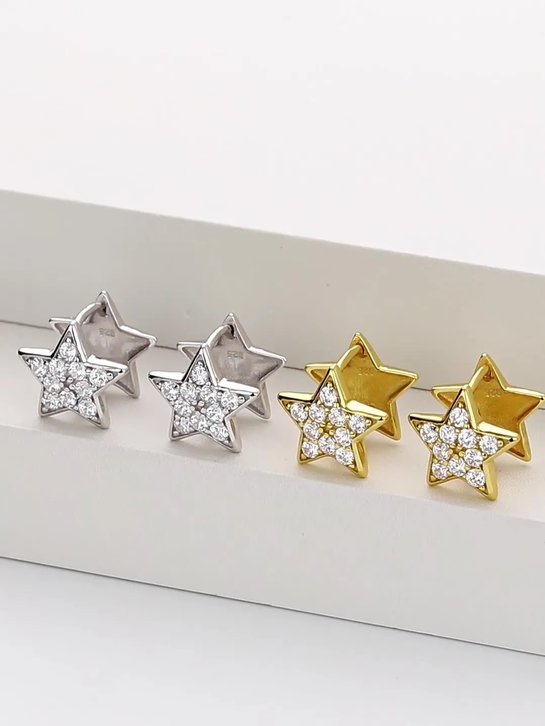 Made entirely of 925 sterling silver, these earrings offer both quality and longevity. Available in both classic silver and a luminous gold finish, Pavé Star adapts to any preference. Weighing 2.9 grams, they are light on the ears while being substantial enough to feel luxurious.
