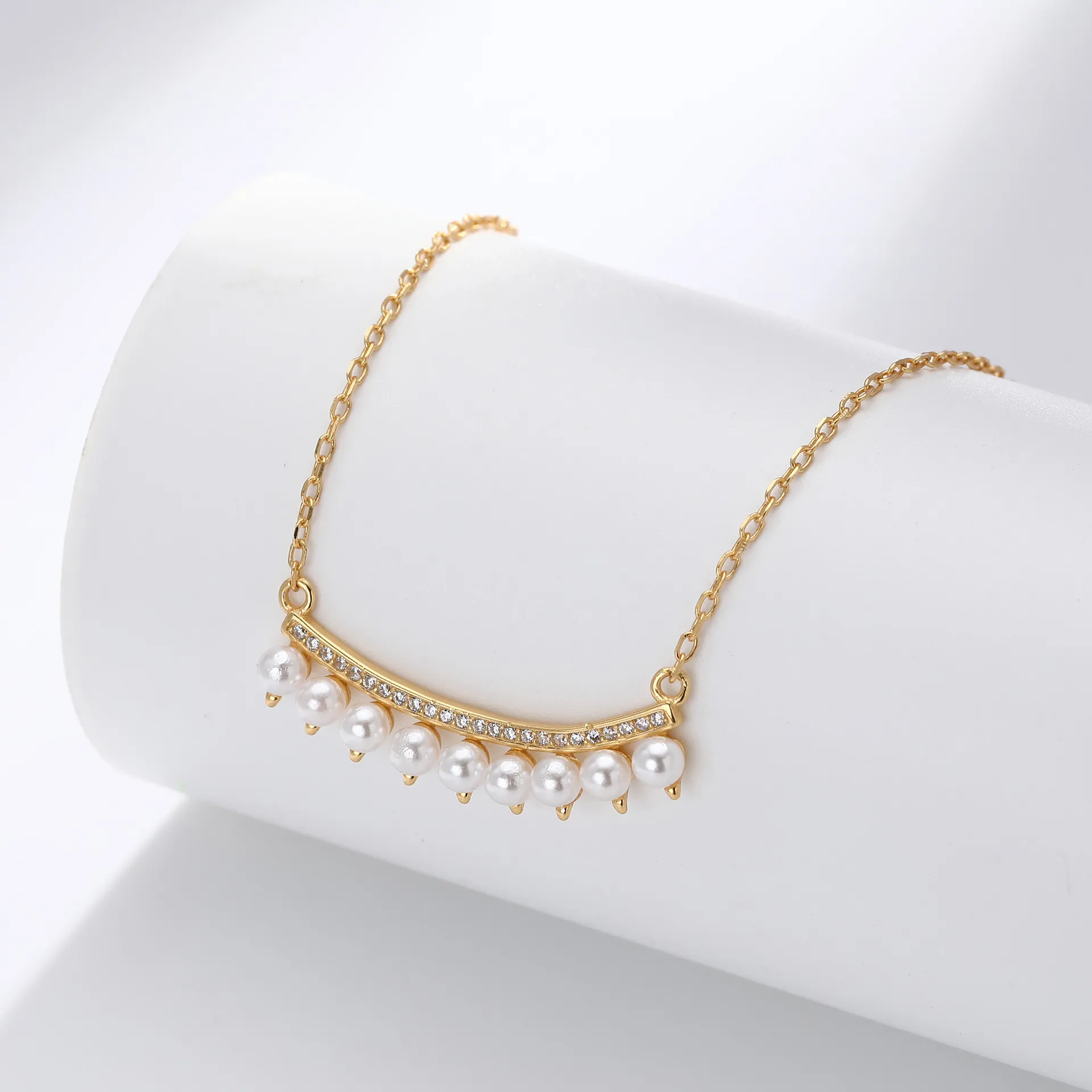 Delicate Pearl Horizon Necklace with Sparkling Zircon Accents