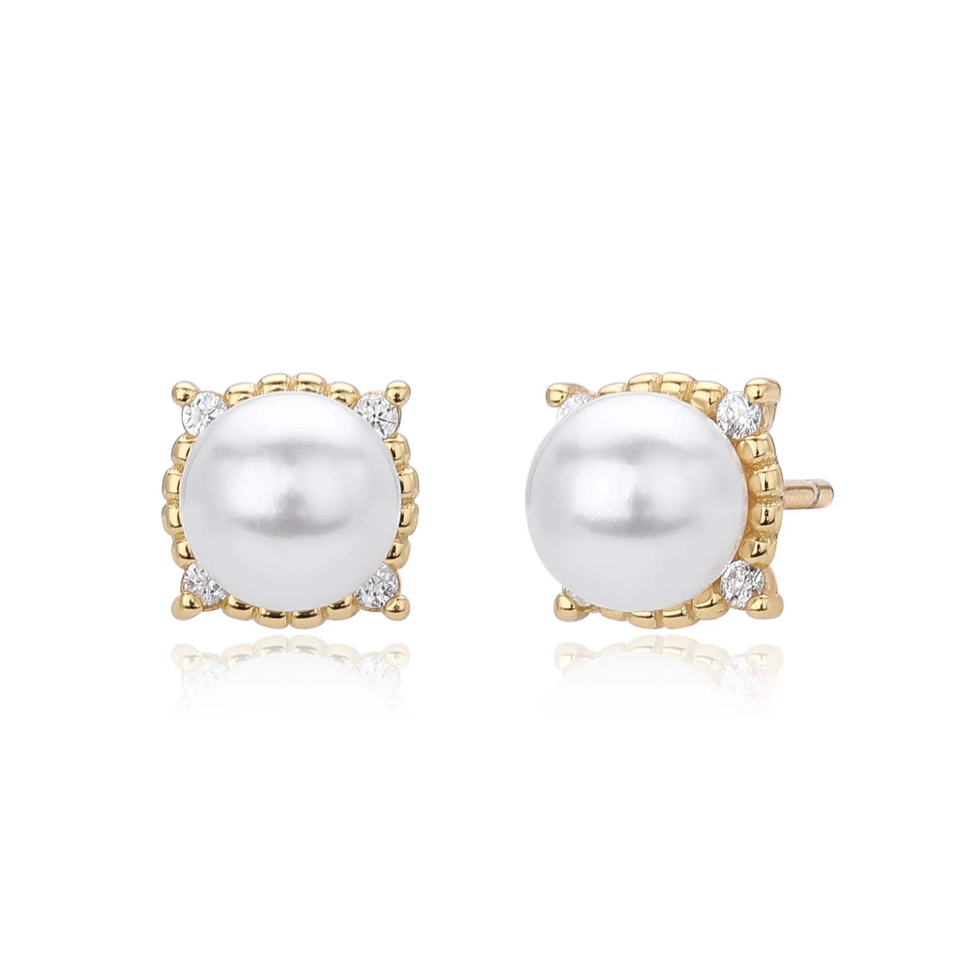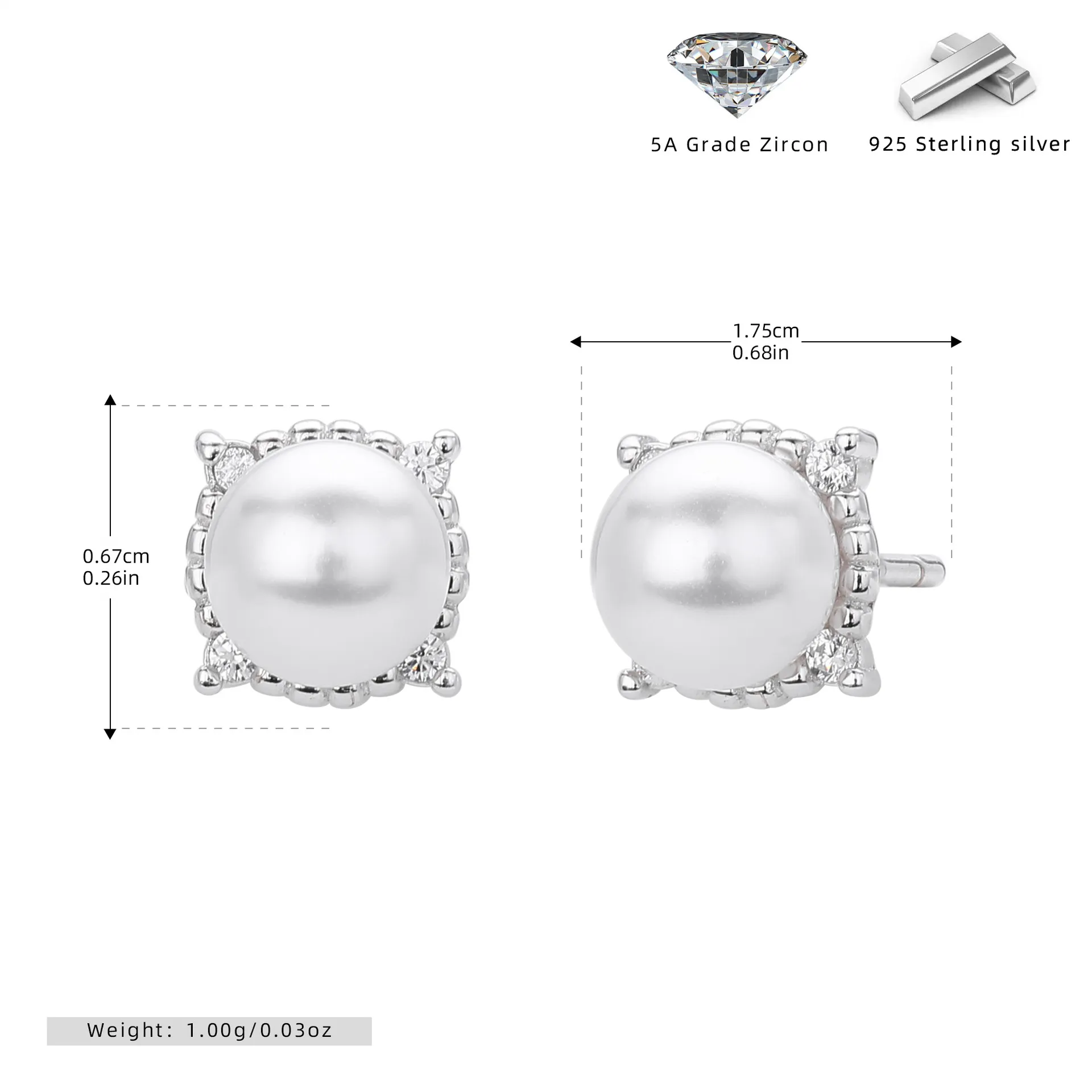 Crafted in premium 925 sterling silver, these earrings offer both strength and elegance. Available in both rhodium-plated and gold-plated finishes, the Regal Pearl Crown maintains its lustre and durability with everyday wear. The settings are shaped with care to cradle the luminous central pearl, while four brilliant zircons accent the corners, forming a regal square design. At just 1.75 grams, they are light yet substantial enough to feel secure on the ear.