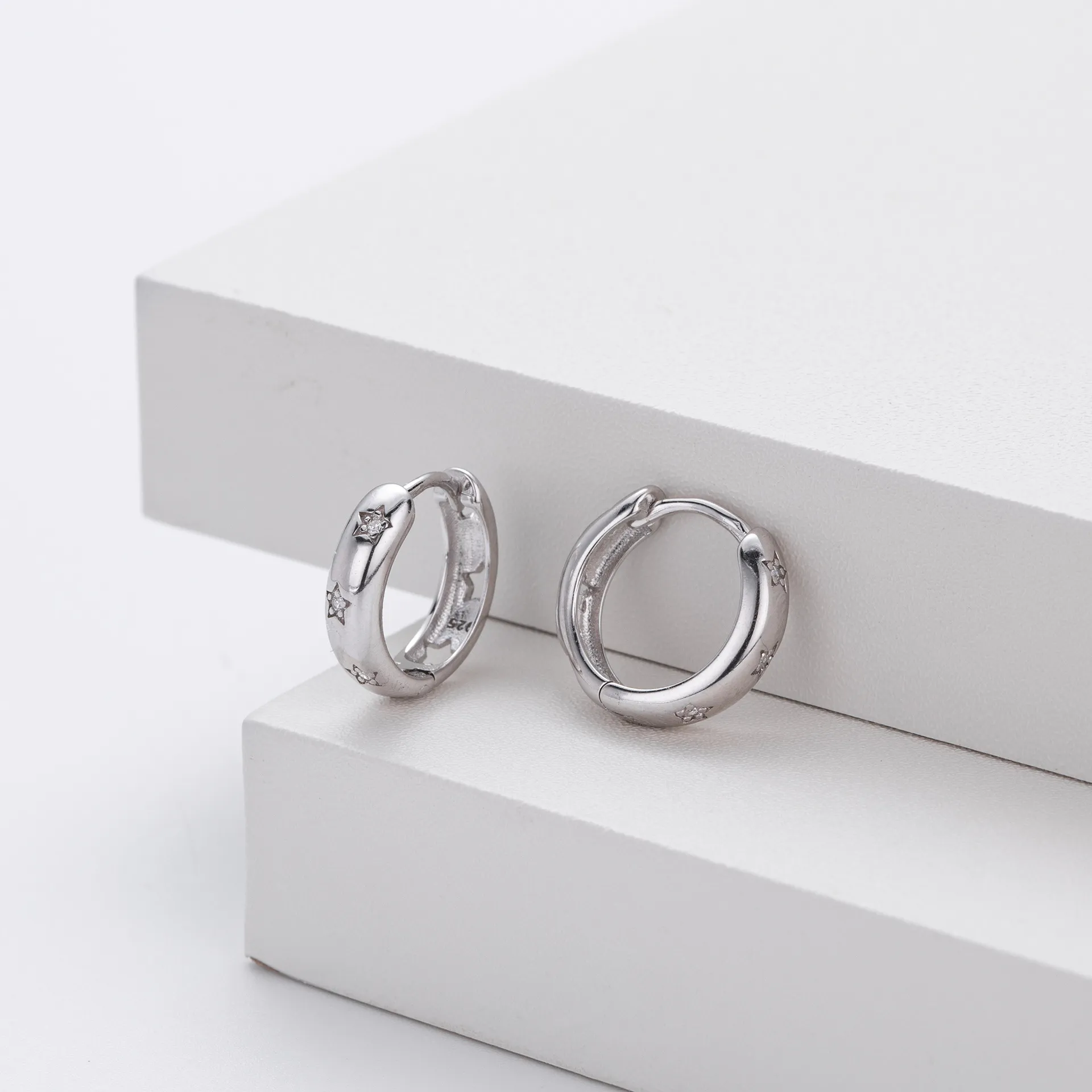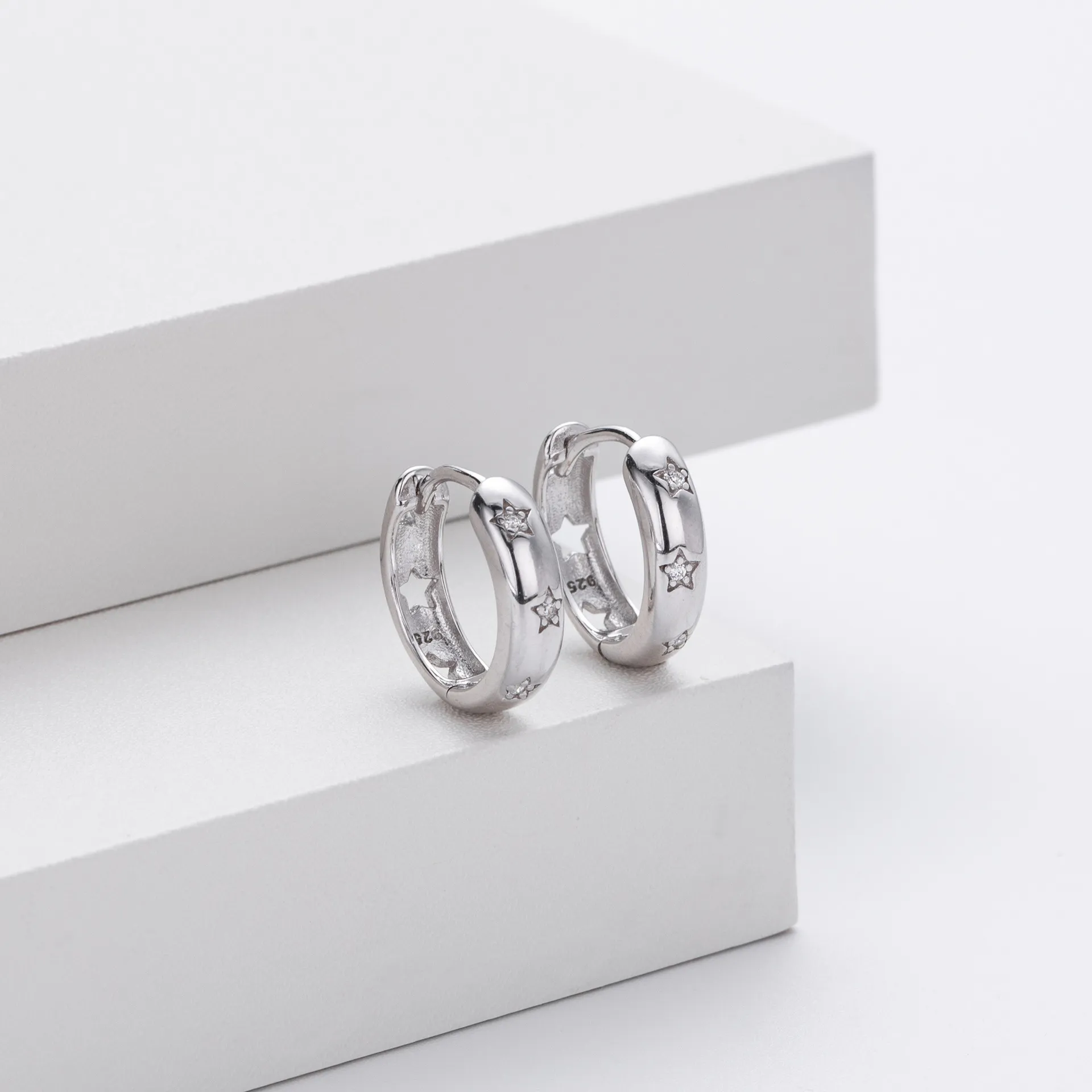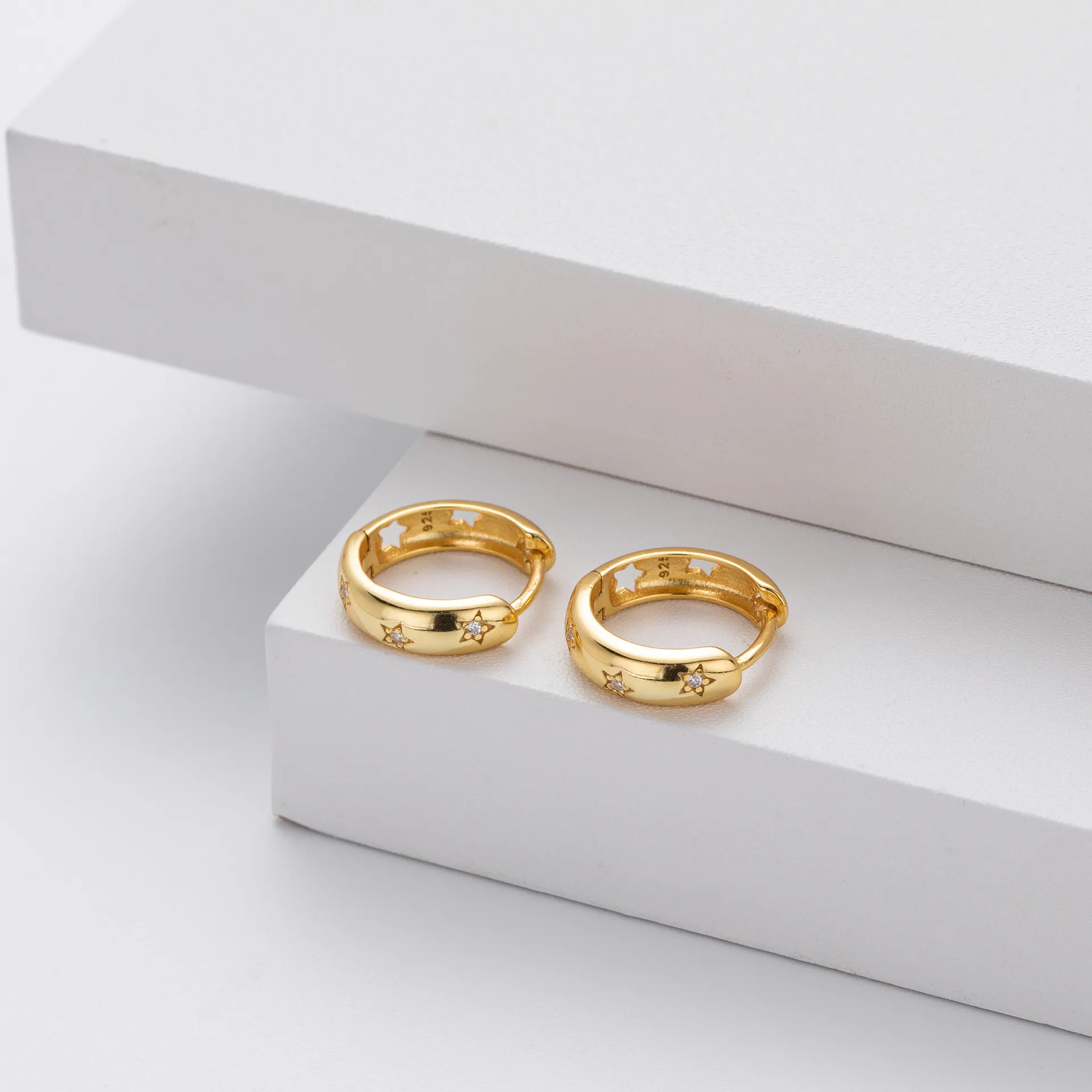 Each star is inlaid with high-quality zircon stones, known for their radiant brilliance. The zircon accents capture and reflect light beautifully, adding a luxurious sparkle to the earrings. The combination of polished hoops and dazzling stars makes these earrings an exceptional choice for customers who appreciate understated glamour with a celestial twist.