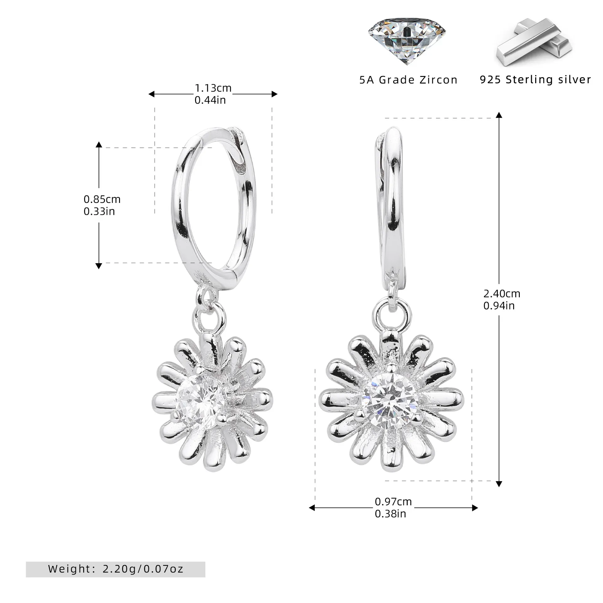 Celebrate charm and brightness with the Sunshine Daisy earrings — a captivating floral-inspired design. These dainty hoop earrings feature a bold central daisy charm, exuding joy and grace. Each petal is sculpted with soft contours, giving dimension and movement to the piece. The central 5A grade zircon sparkles brilliantly, reminiscent of morning dew on fresh petals.