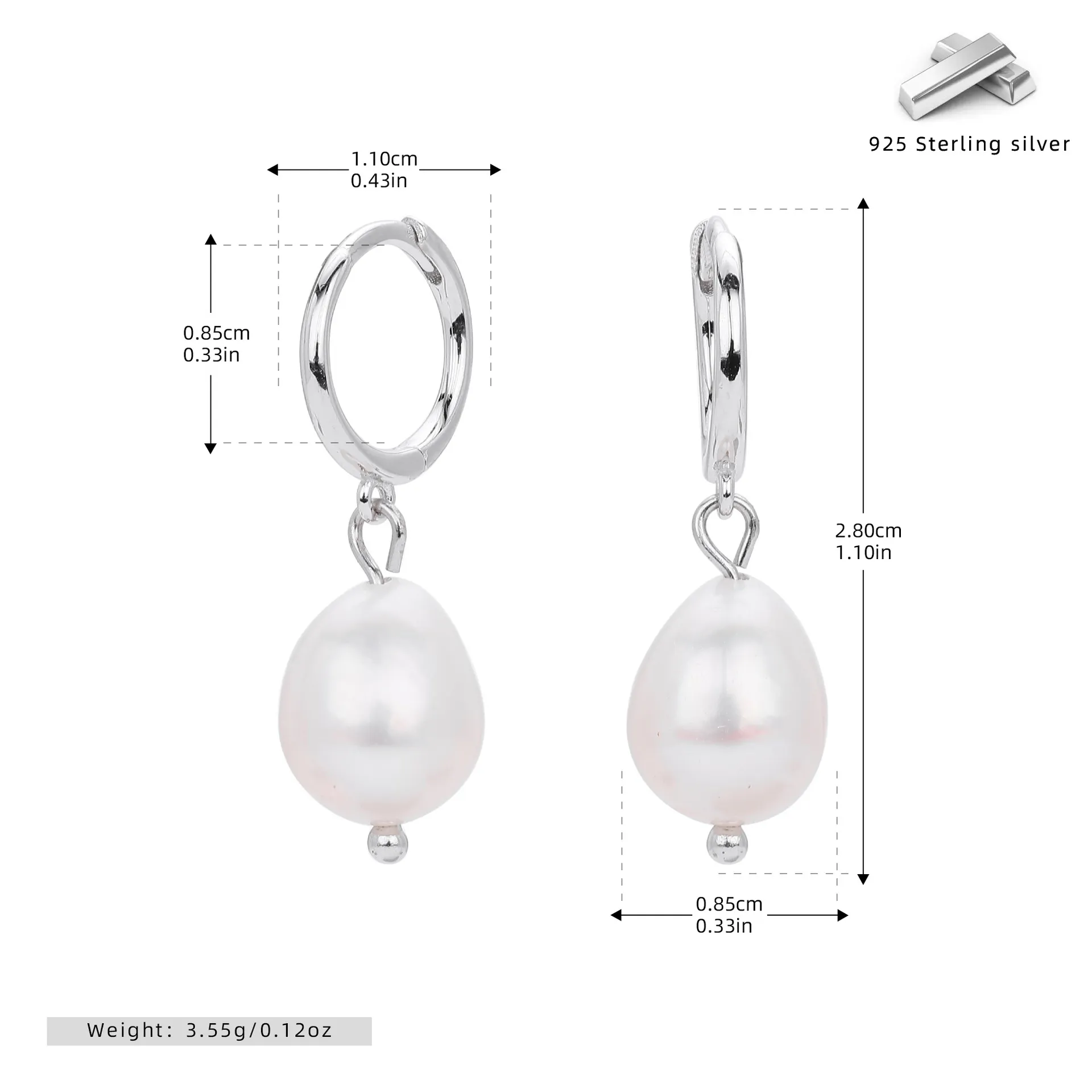 The baroque pearl drop, with its soft asymmetry and subtle glow, adds an artistic edge to the clean hoop design. The full length of 2.8 cm and width of 0.85 cm make it a flattering size that stands out without overwhelming. Lightweight at 3.55 grams, the Timeless Baroque Pearl earrings offer comfort without compromising on sophistication.